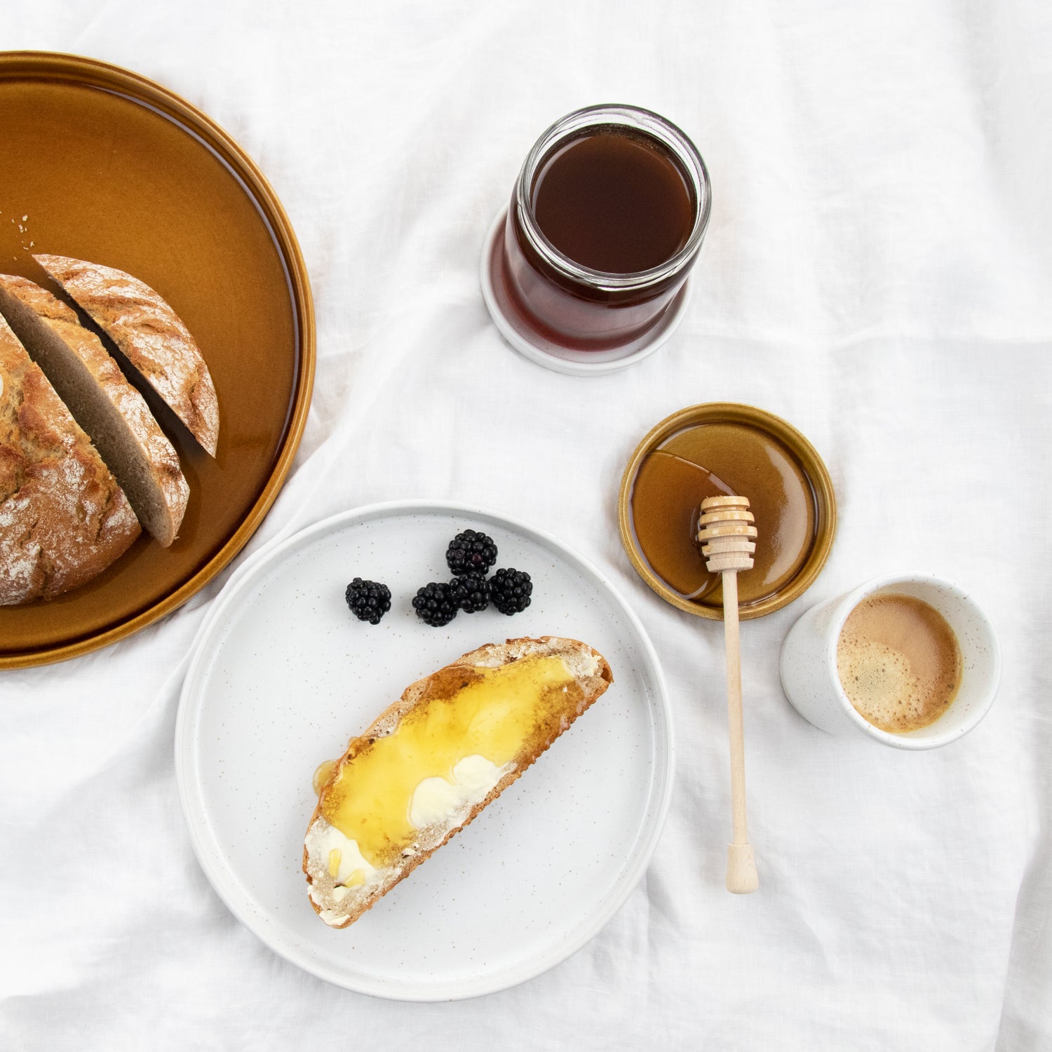 Von Hand bearbeitet und mit einer reaktiven Glasur versehen, gleicht kein Teller dem anderen. Dadurch ist jedes Stück ein Unikat.