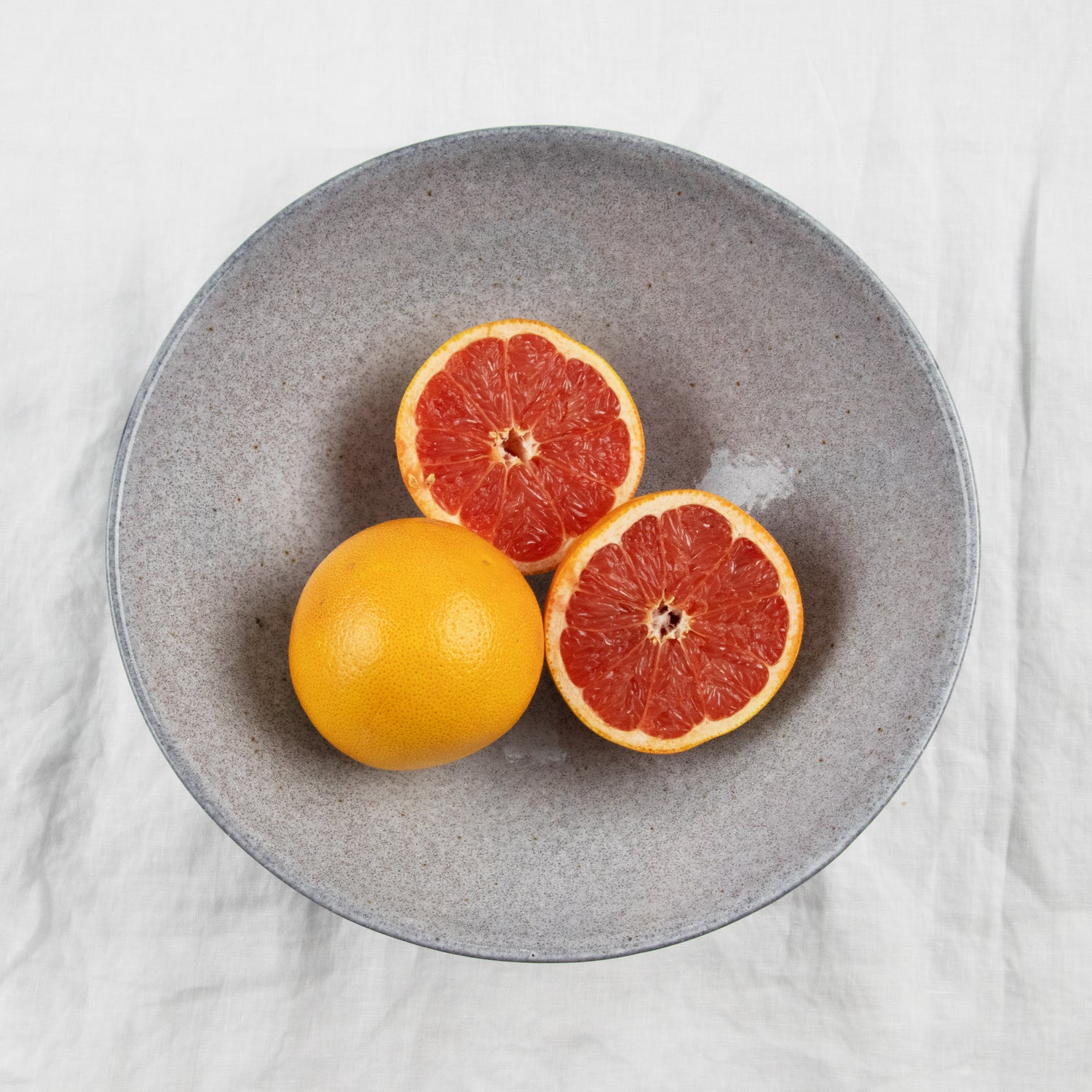 Unsere mittelgroße Salatschüssel in der Farbe pedra ist keine graue Maus. Mit ihren goldbraunen Sprenkeln und dem lebendigen Muster eignet sie sich für bunte Salate und als Obstschüssel.