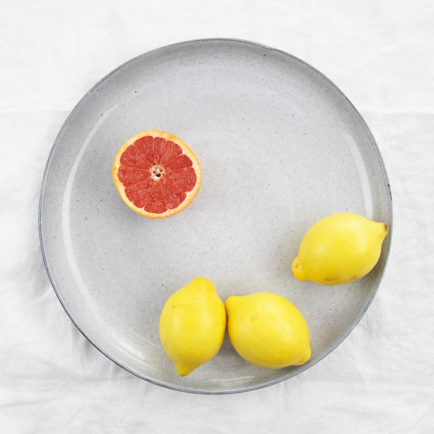 Unsere große Servierschale in der Farbe pedra ist keine graue Maus. Mit ihren goldbraunen Sprenkeln und dem lebendigen Muster ist sie ein schöner Blickfang auf dem Tisch.